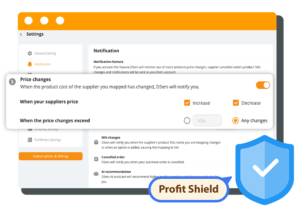 Control is key. Advanced tools don't just blindly update; they follow your rules. In DSers Auto-Update settings, you can choose to "Notify Only" instead of auto-updating. This gives you the final say: absorb the cost, raise the price, or switch to a backup supplier.